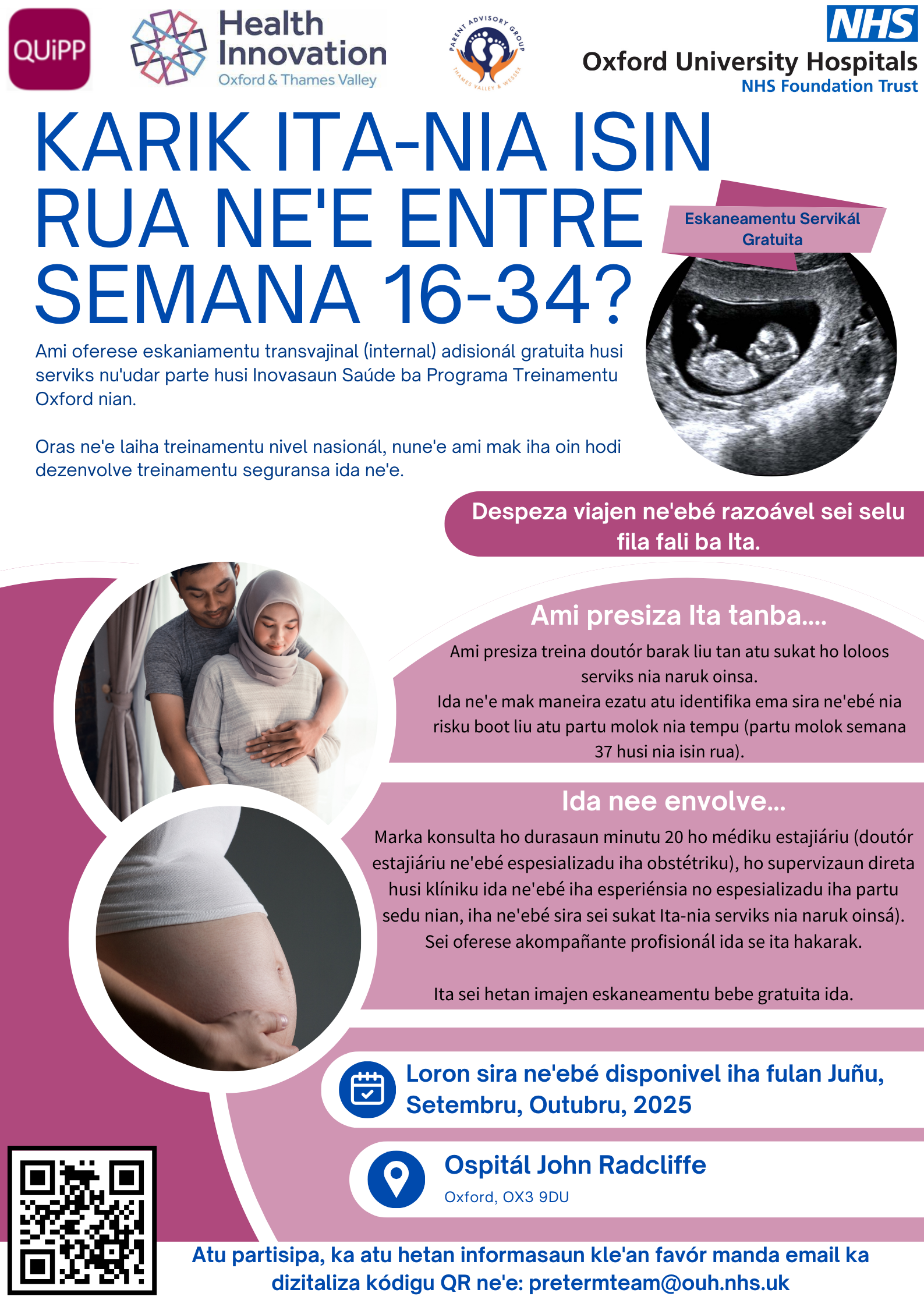 The Maternity and Neonatal Patient Safety team at HIOTV secured funding to support this pilot and developed it with obstetricians, midwives and other experts in preterm birth. Recruitment of pregnant volunteers is a key element of the programme, and we are grateful to the Neonatal Parent & Family Engagement Lead, Thames Valley and Wessex Operational Delivery Network, and to the Specialist Midwife for Equality, Diversity and Inclusion at who co-produced the recruitment posters with us (see example, right). The HIOTV team co-ordinated and evaluated feedback from each day, and engaged with partner organisations to share and promote this innovative project.
